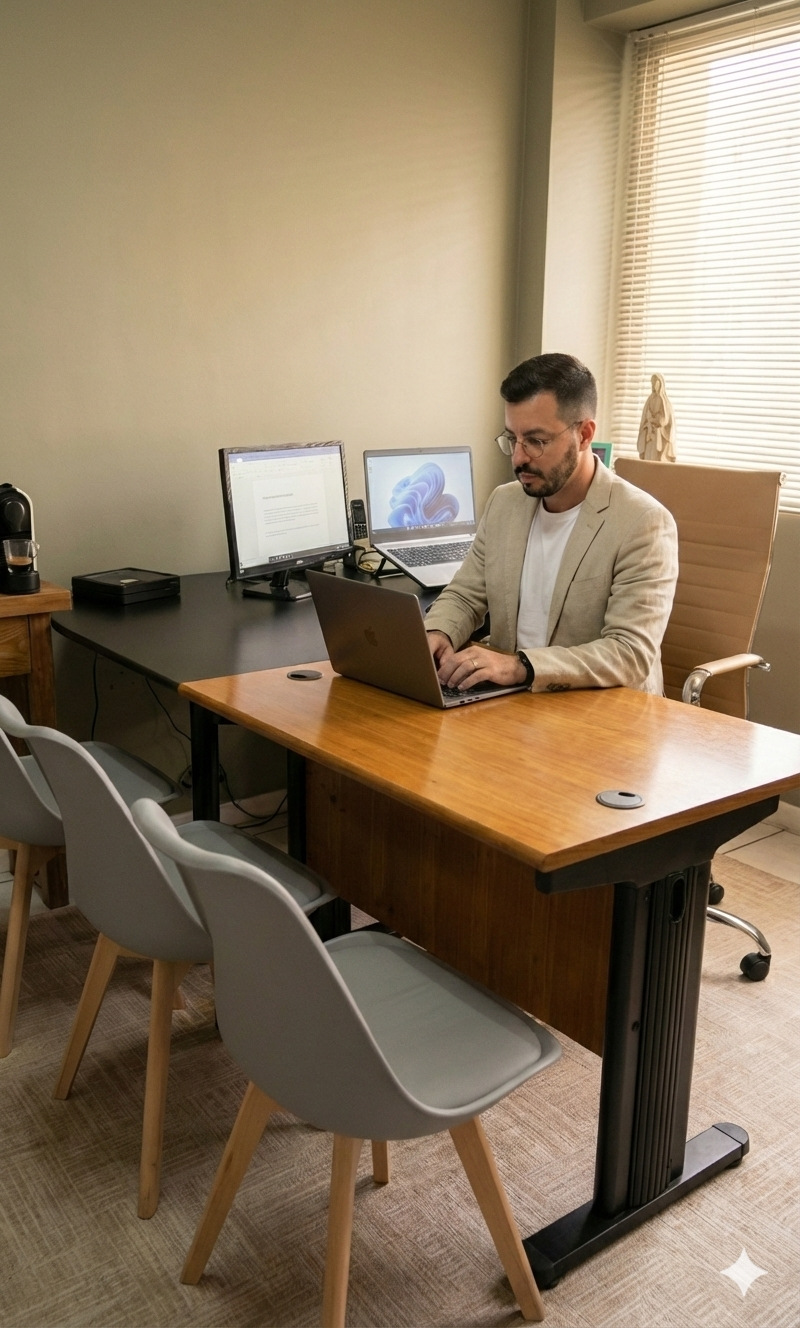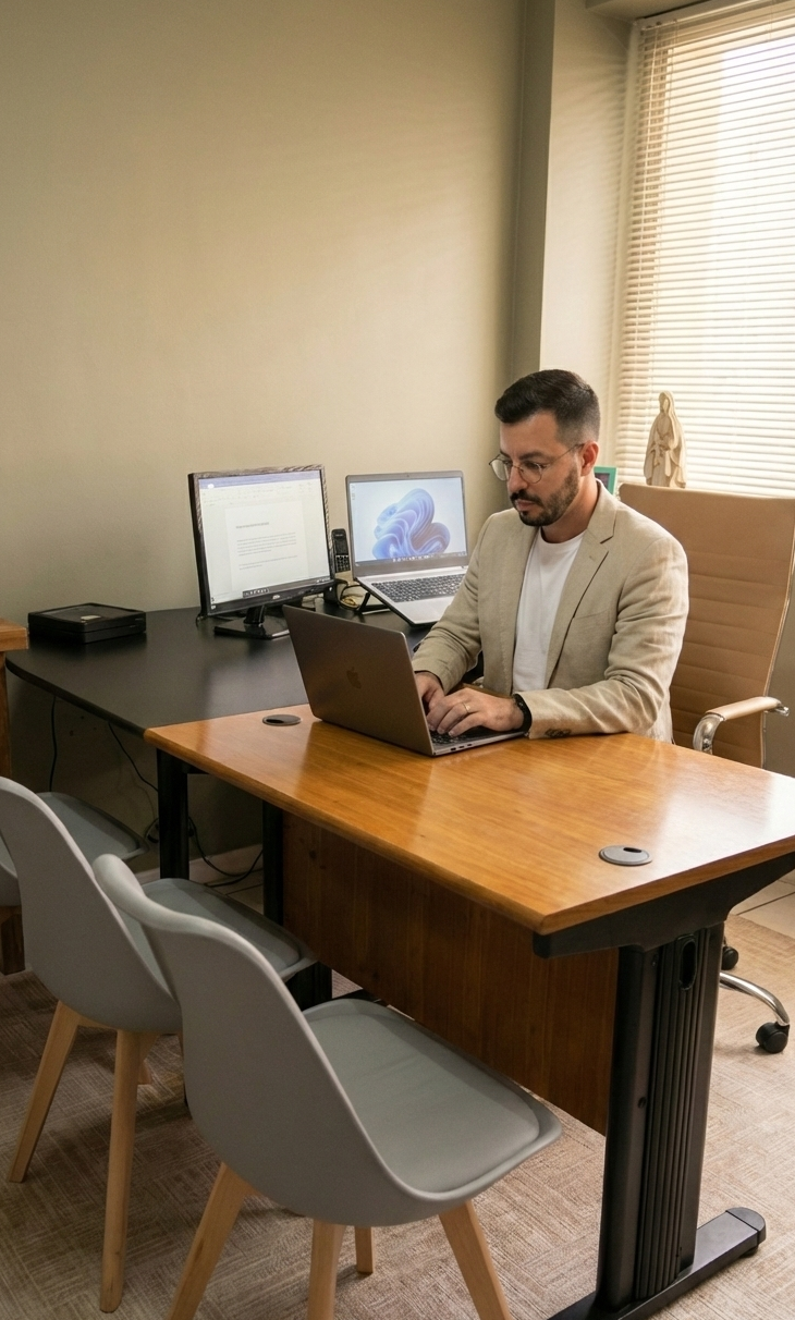 Trabalho para resolver os problemas dos clientes e não tão somente gerar um número de processo de maneira robótica e inconsciente. Me preocupo com todos os percalços que um processo gera e persigo o conceito de que seja somente uma das muitas ferramentas na busca pela justiça e pela autonomia pessoal de quem me procura.